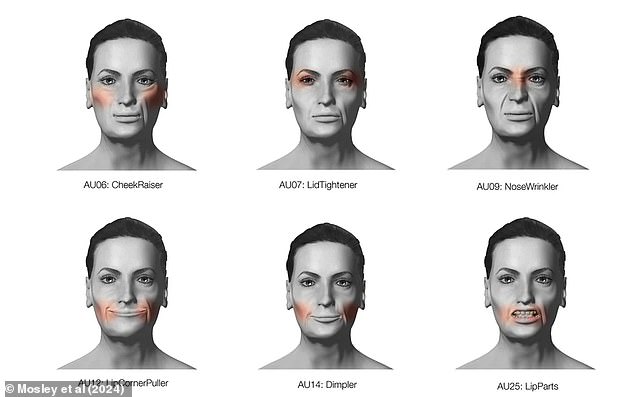 The above renderings show the six facial expressions that people with regular depression made while watching a funny video that people with melancholia did not make while watching any videos