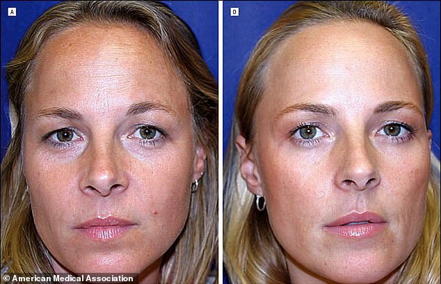 Like the fruit and vegetable study, a separate 2024 study showed the difference in twins who received very few Botox injections – image A – next to twin who got Botox regularly – image D
