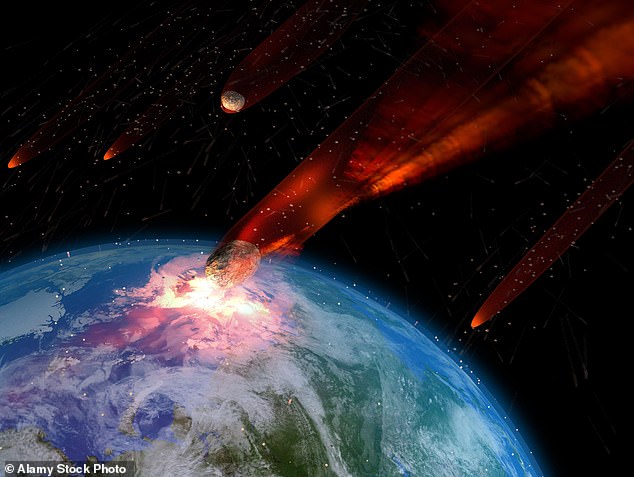 ‘Over a human time scale, these asteroid impacts would be a disaster. They would create a massive shockwave and tsunami, there would be widespread fires, and large amounts of dust would be sent into the air, blocking out sunlight.’