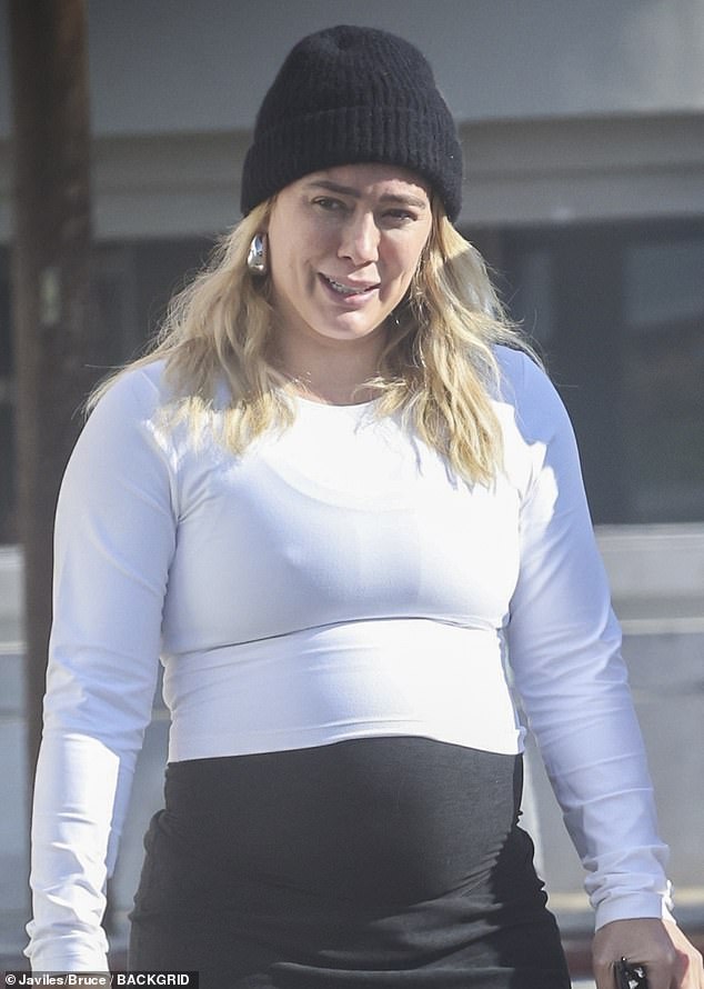The Younger alum – who also shares son Luca, 11, with her ex Mike Comrie – wore a black miniskirt and long-sleeved white t-shirt that put her growing baby bump on full display.