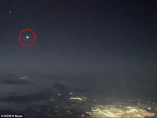 A United Airlines pilot, another pilot flying a Life Flight air ambulance and two more aviators with Horizon all witnessed UFOs – some ‘moving at extreme speeds’ – over Oregon this past weekend. Above, one pilot’s photo of their encounter, as obtained by local NBC affiliate KGW 8