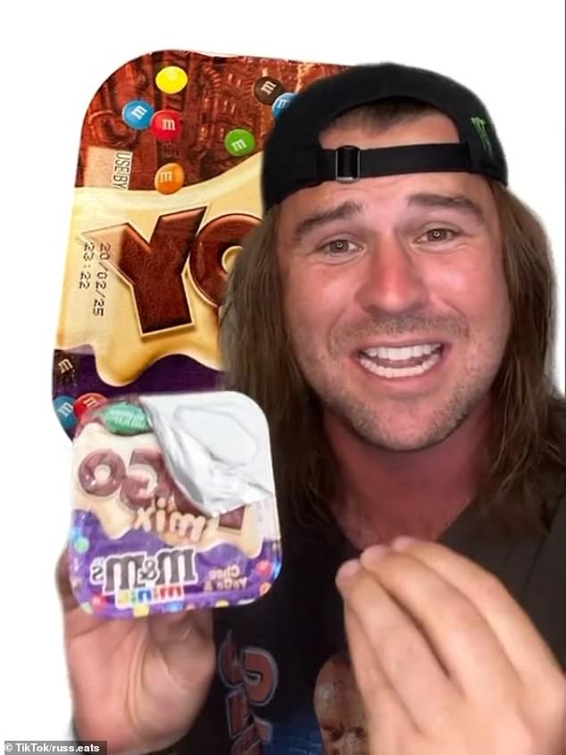 ‘It’s a YoGO – yoghurt on the GO,’ Russ said. ‘How am I supposed to eat it without a spoon? This is completely different to a YoPro.’