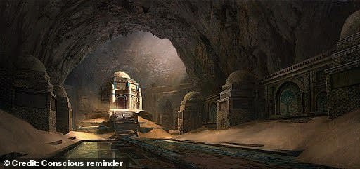 The Hall of Records is a legendary concept often linked to ancient Egyptian lore. It is believed to be a hidden chamber beneath the Great Pyramid or the Sphinx, containing vast amounts of lost wisdom and knowledge about the ancient civilization (artist’s impression)