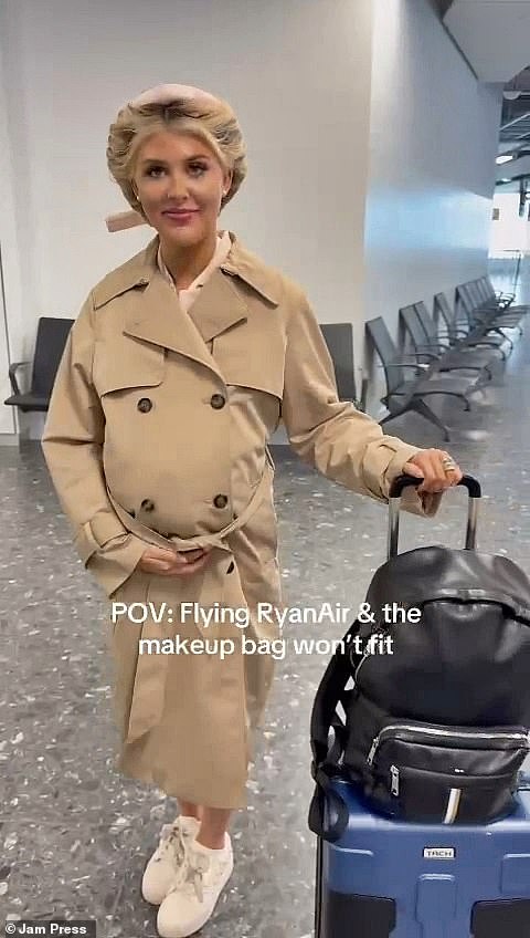Grace Hale, 20, created a fake pregnancy bump by shoving two jackets and a bag full of makeup inside her top to avoid paying Ryanair’s ‘ridiculously expensive’ baggage fees