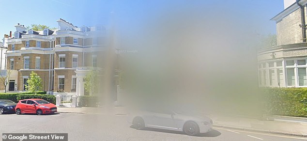 This home, in Phillimore Gardens in Kensington, has been blurred out. The road is home to some of the most expensive houses in the country
