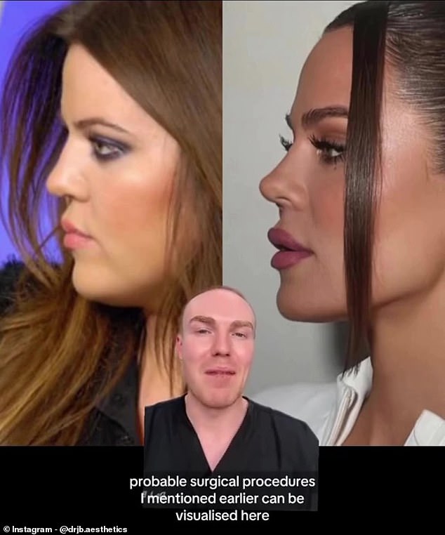 Recently, Dr Andrew Peredo, who specialises in aesthetic procedures of the face, also speculated that Khloe had possibly had work done to ‘her lips, nose, jawline and the area around the eyes’.
