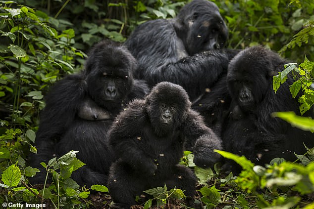 The DRC’s ancient forests are home to several endangered species, including gorillas (File image of gorillas in the DRC)