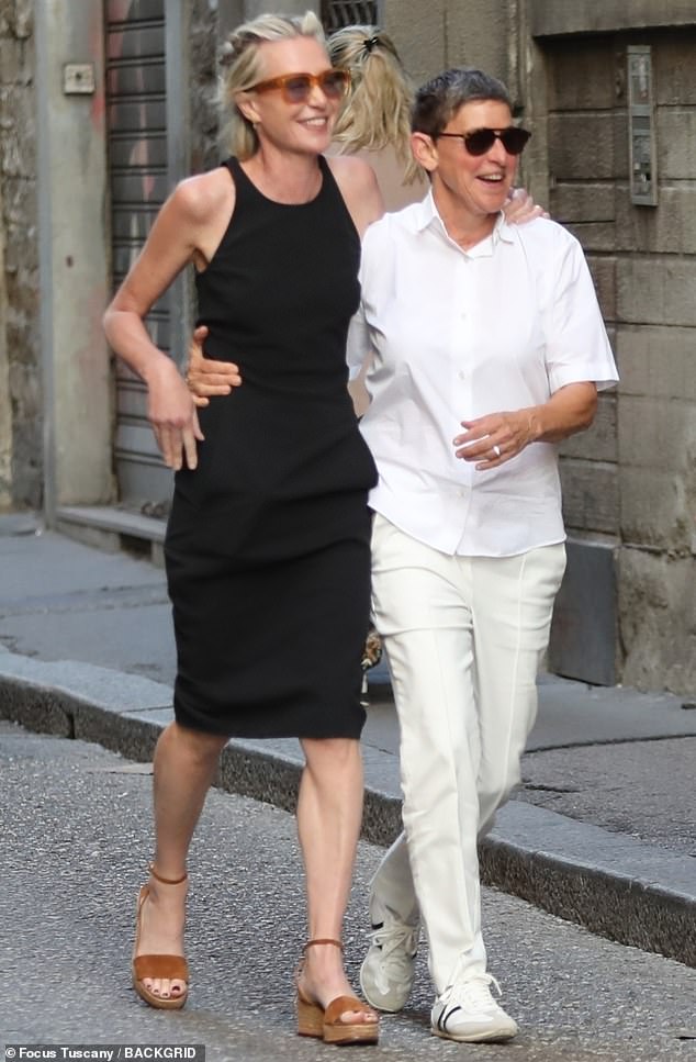 However all their concerns seemed banished to the past when Ellen, 67, and Portia, 52, were seen Friday strolling to the Ponte Vecchio in the Tuscan capital.