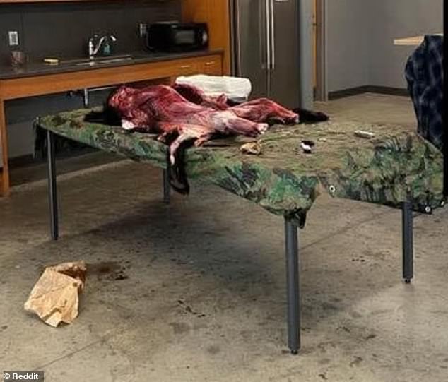 Photos of the scene quickly circulated on Reddit, Sidechat and Facebook groups, showing the bear’s partially skinned body laid out on a camouflage tarp.