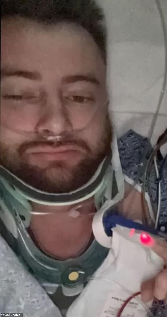 ‘This accident has left Mitch with extreme injuries including a fractured pelvis, broken ribs, pneuomothorax (perforated lung) and a kidney laceration.