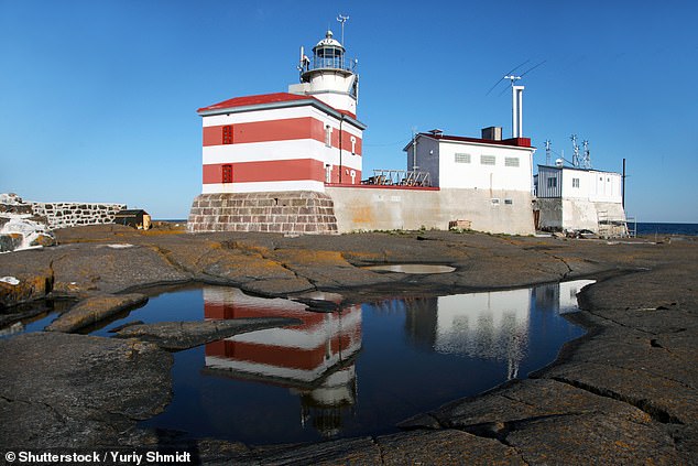 Despite being just 8.2-acres in size, Märket island has belonged to both Sweden and Finland for centuries. Pictured: The lighthouse on Märket island