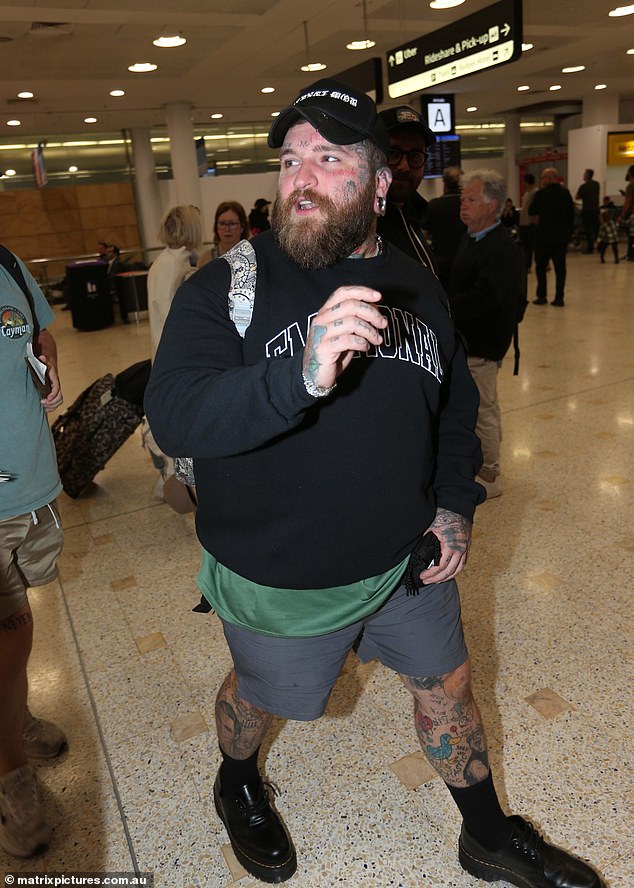 Teddy Swims (pictured) looked to be in great spirits on Thursday when he arrived at Sydney Airport, ahead of his upcoming NRL Grand Final performance at Accor Stadium