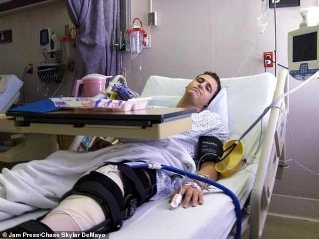 At age 19, Chase Skylar DeMayo had a heart attack when an air bubble accidentally got into his IV at Langley Air Force Base hospital in Virginia, causing his heart to stop for a few minutes.