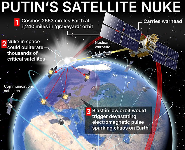 He added: ‘They’ve got payloads on board that can see our satellites and are trying to collect information from them.’