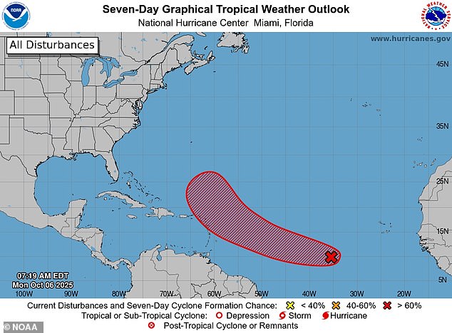 If Jerry does form, it’ll be the tenth named storm to form in the Atlantic this year, and forecasters have warned that the US is still in the peak of hurricane season.
