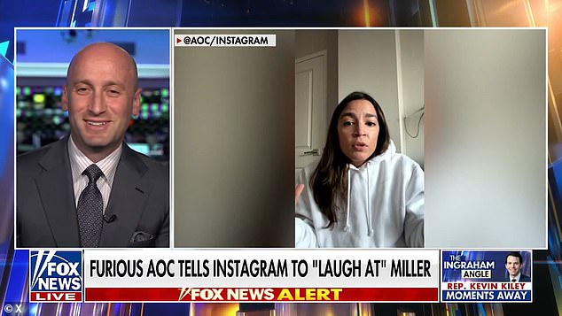In her initial video on Instagram attacking Miller, AOC told her followers that ‘MAGA men’ need to be mocked for their ‘insecure masculinity.’