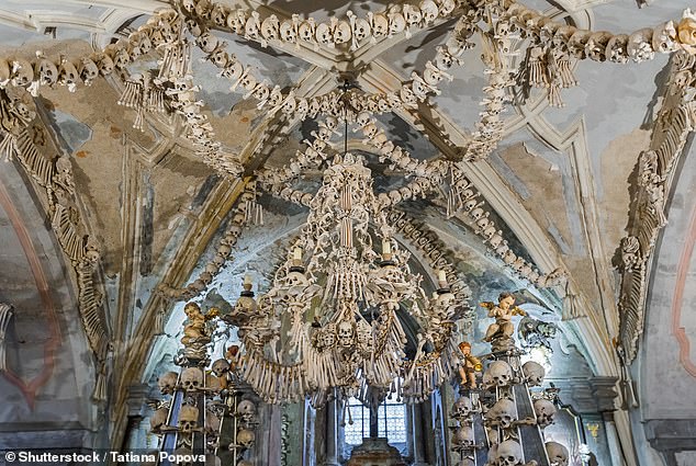 The Roman Catholic chapel is decorated with the skeletal remains of between 40,000 and 70,000 individuals. That’s more than eight million individual bones
