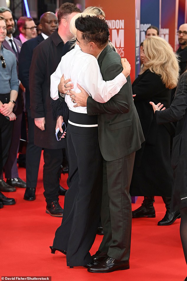 Colin Farrell and Tilda Swinton shared a warm hug as they attended the premire of Ballad Of A Small Player at The Royal Festival Hall in London on Thursday