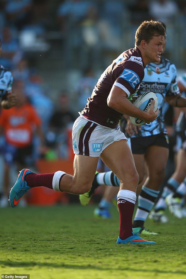 Liam Knight was homeless for a stretch when he first cracked the footy big time with the Manly Sea Eagles (pictured)