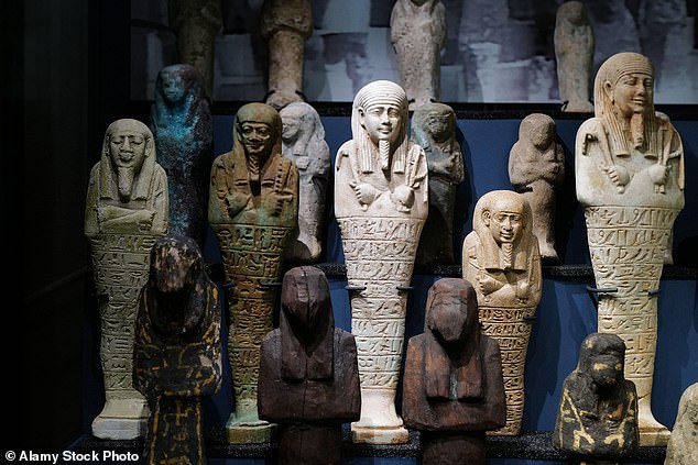 A collection of sarcophaguses at the Petrie Museum of Egyptian and Sudanese Archaeology