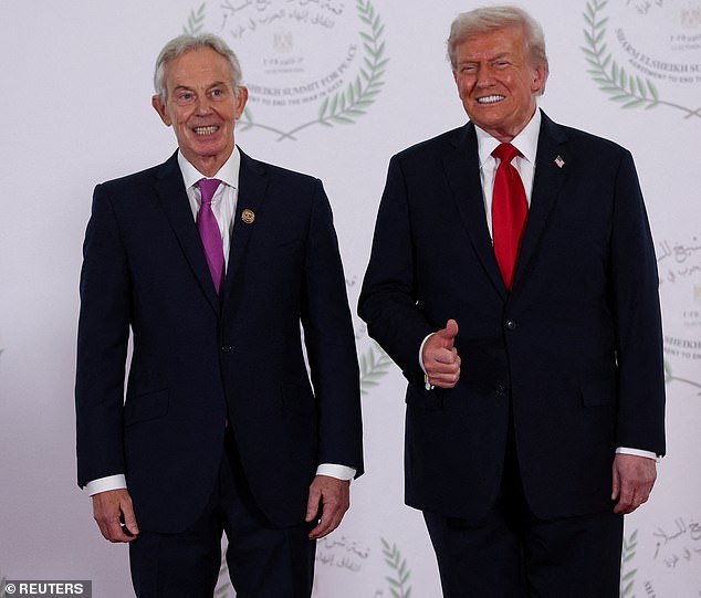 Mr Trump on Monday met with Sir Tony at a Gaza peace summit in Sharm-el-Sheikh, Egypt, with the pair posing for pictures together.