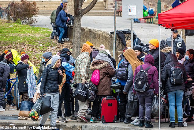 A preacher talks to drug users in Philadelphia in 2023 as good Samaritans distribute food and warm clothing for those affected by the drug epidemic and homelessness (file image)