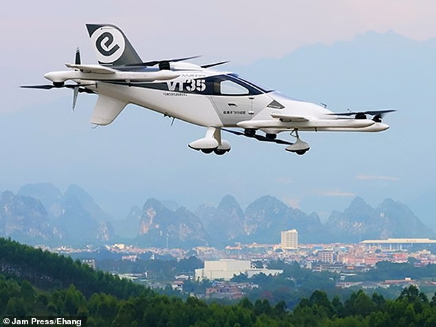 EHang said: ‘With its autonomous flight capability, point-to-point efficiency, and eco-friendly electric propulsion, VT35 is set to play a pivotal role in advancing the low-altitude aerial mobility ecosystem from urban to intercity corridors.