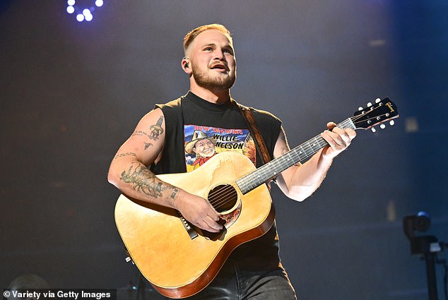 Zach Bryan stunned fans on Tuesday with the unexpected news of his split from Brianna Chickenfry; (pictured 2023)